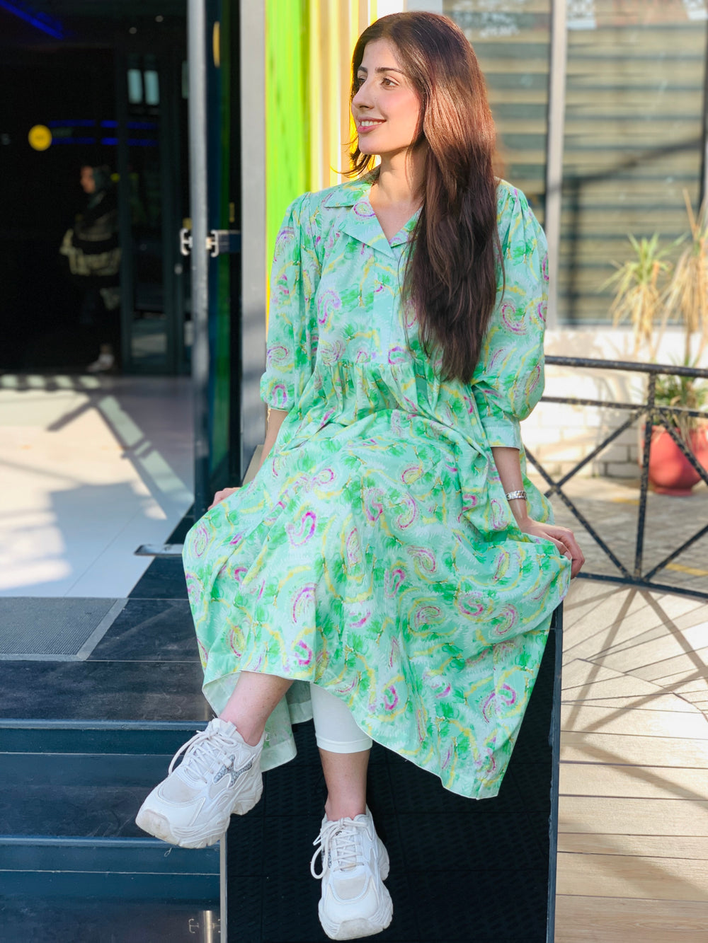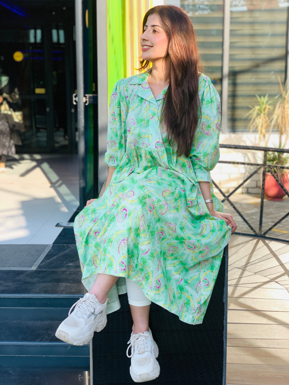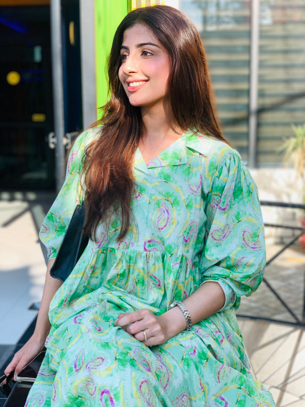 Stay fresh and stylish in this green maxi dress, designed with soft prints and a relaxed, flowy silhouette. Perfect for casual outings, summer gatherings, or day-to-day wear, this dress offers effortless elegance and comfort.