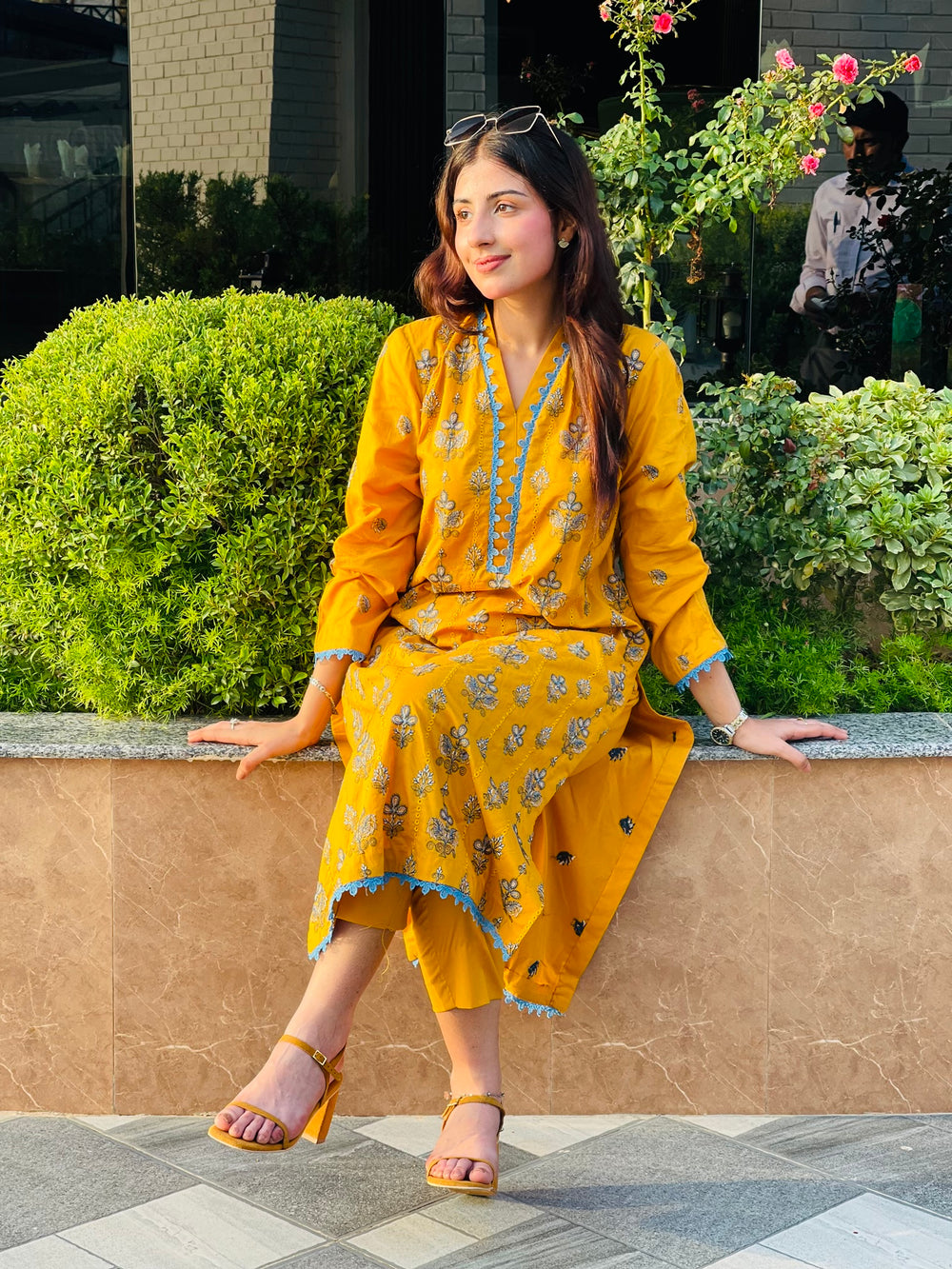 Refresh your wardrobe with this pastel green printed suit, designed with subtle patterns and a lightweight dupatta. A perfect choice for daytime outings, festive gatherings, or casual wear, this suit combines elegance with everyday comfort.